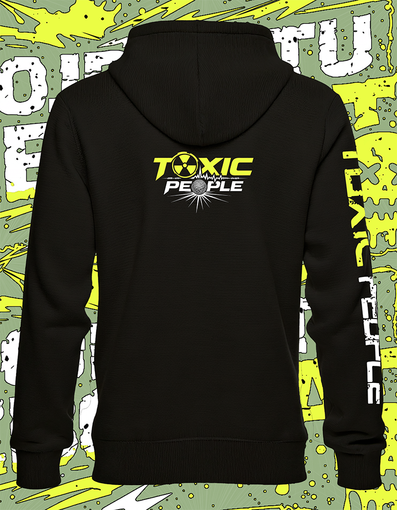 Zadní strana je jednoduchá menší logo Toxic People, které drží identitu. A výrazný nápis Toxic People na pravém rukávu.