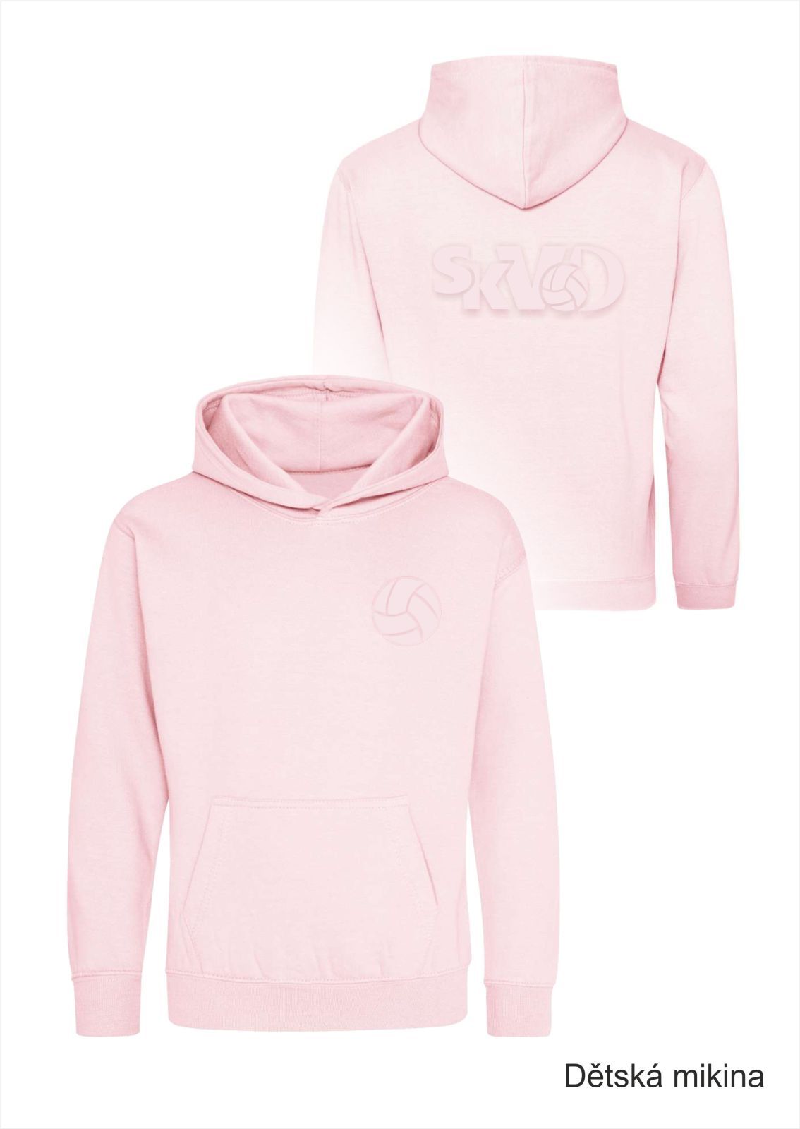 Mikina volnočasová s 3D výšivkou levé prso a záda SKVD baby pink vel. XS
